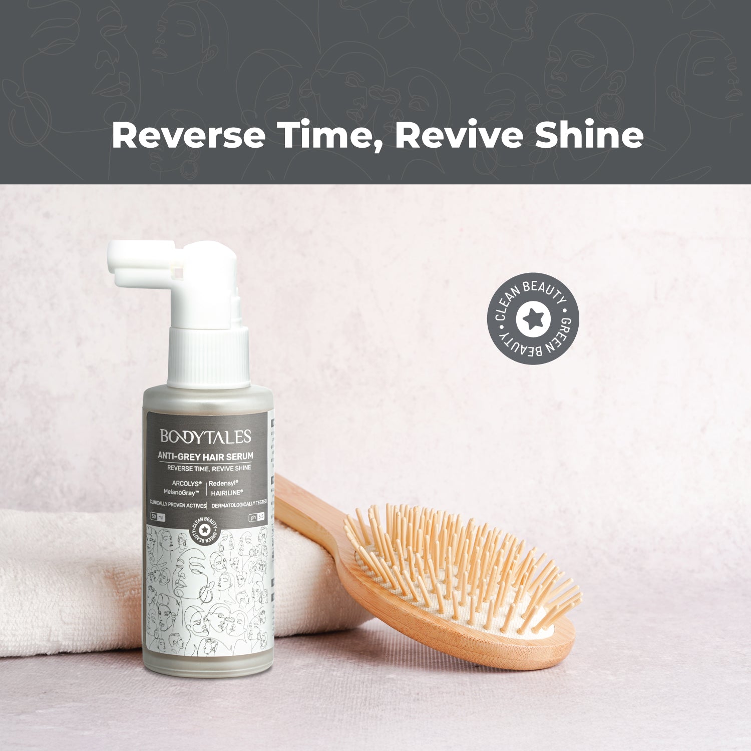 Prevents further greying | Improves hair texture | Promotes healthy hair growth