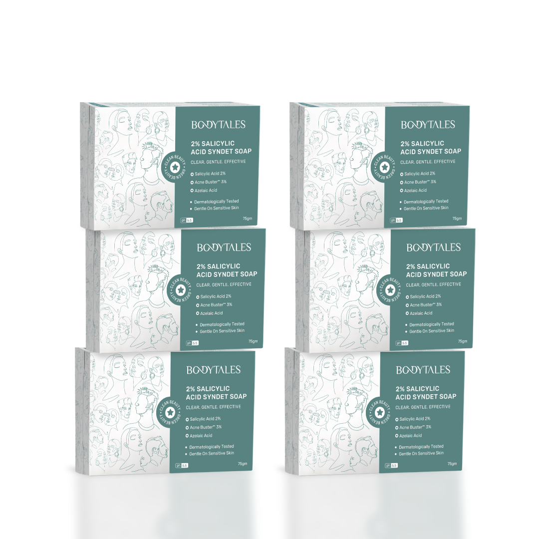 Powerful Acne Control: BodyTales 2% Salicylic Acid Soap gently exfoliates and unclogs pores, helping reduce pimples, blackheads, and whiteheads for clear, healthy skin.